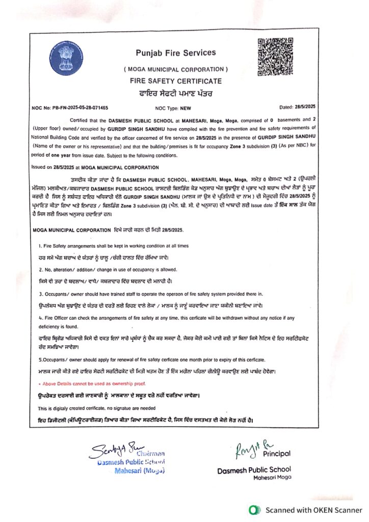 Fire safety certificate